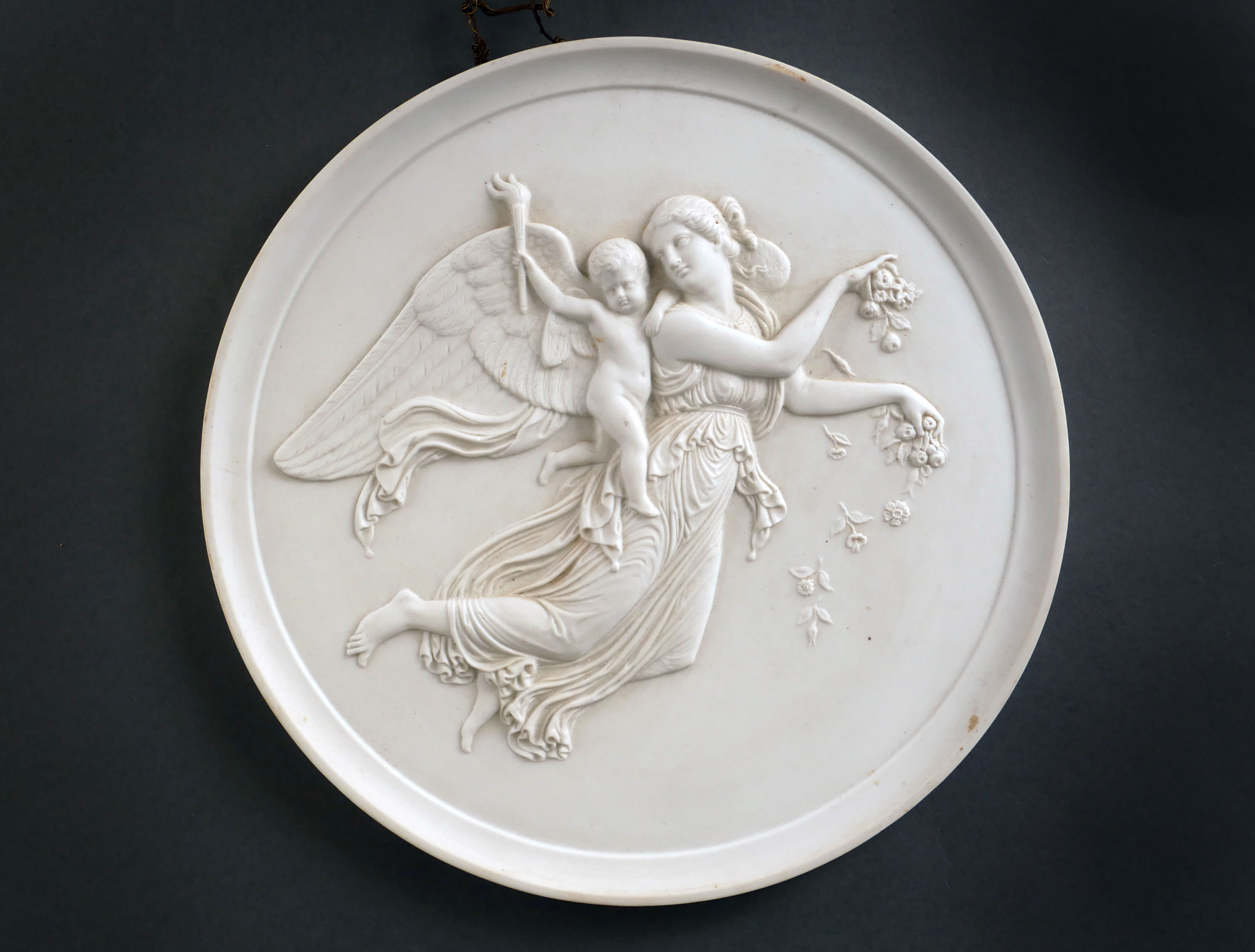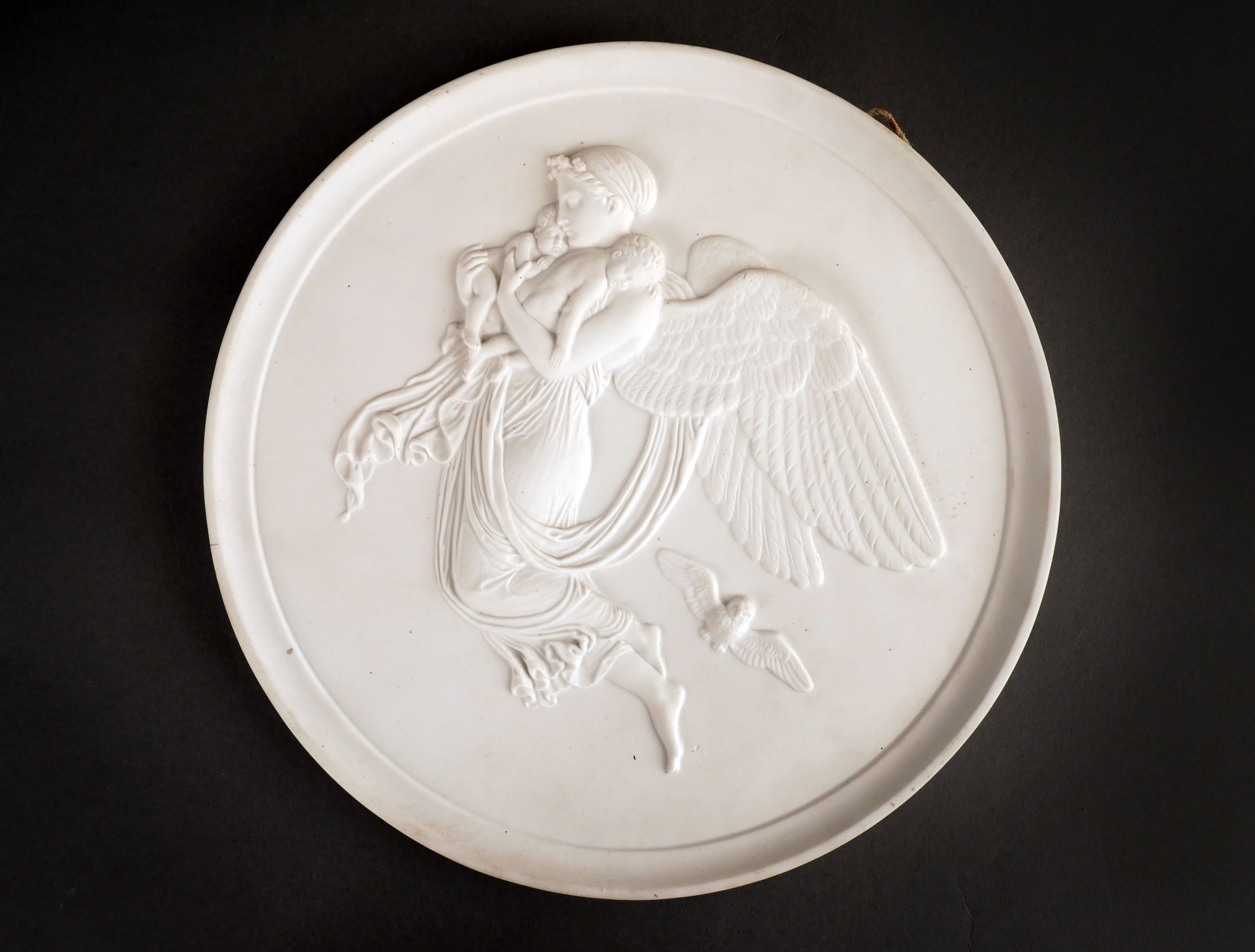 Die Königliche Kopenhagener Porzellanmanufaktur begann in den 1820er Jahren und autorisiert vom Künstler mit der Herstellung größerer Auflagen von Biskuitfiguren und -reliefs. Die raue, marmorartige Oberfläche des Biskuitporzellans entsprach dem an antiker Skulptur geschulten, klassizistischen Geschmack. Im Format der Kleinplastik konnten nun auch wohlhabende Bürger Kunstwerke des berühmten Bildhauers erwerben und ihre Bildung demonstrieren. Als die größten Verkaufsschlager erwiesen sich die Relief-Tondi „Tag“ und „Nacht“ (Gipsmodell von 1815, Thorvaldsen Museum, Inv.Nr. A369 und A370), gefolgt von den vier Jahreszeiten und „Wer kauft Liebesgötter“. Der außerordentliche Verkaufserfolg der 1840 produzierten, 11cm großen Porzellanvariante von „Tag“ und „Nacht“– 2100 Exemplare im ersten Jahr – führte zur Ausweitung des Angebots und rief Konkurrenten auf den Plan. Einer der Modelleure, Frederik Wilhelm Gröndahl, tat sich 1852 mit den Buch-und Kunsthändlern Jacob Hermann Meyer und Hermann Bing zusammen und gründete 1854 die Manufaktur: Bing & Gröndahl. Auf dem Aquarell ihres Porzellanmalers, Andreas Juuel, sieht man, wie die Plaketten, Reliefs und Kleinskulpturen aus Biskuitporzellan im bürgerlichen Interieur präsentiert wurden. Mit Ibsen und Hjorth kamen im Laufe des 19. Jahrhunderts weitere Manufakturen hinzu, die Thorvaldsens Skulpturen und Reliefs in Porzellan oder Terracotta reproduzierten. Nach dem Tod des Künstlers übernahm das Thorvaldsen Museum in Kopenhagen, das seinen Nachlass besitzt, die Autorisation (Eneret).
