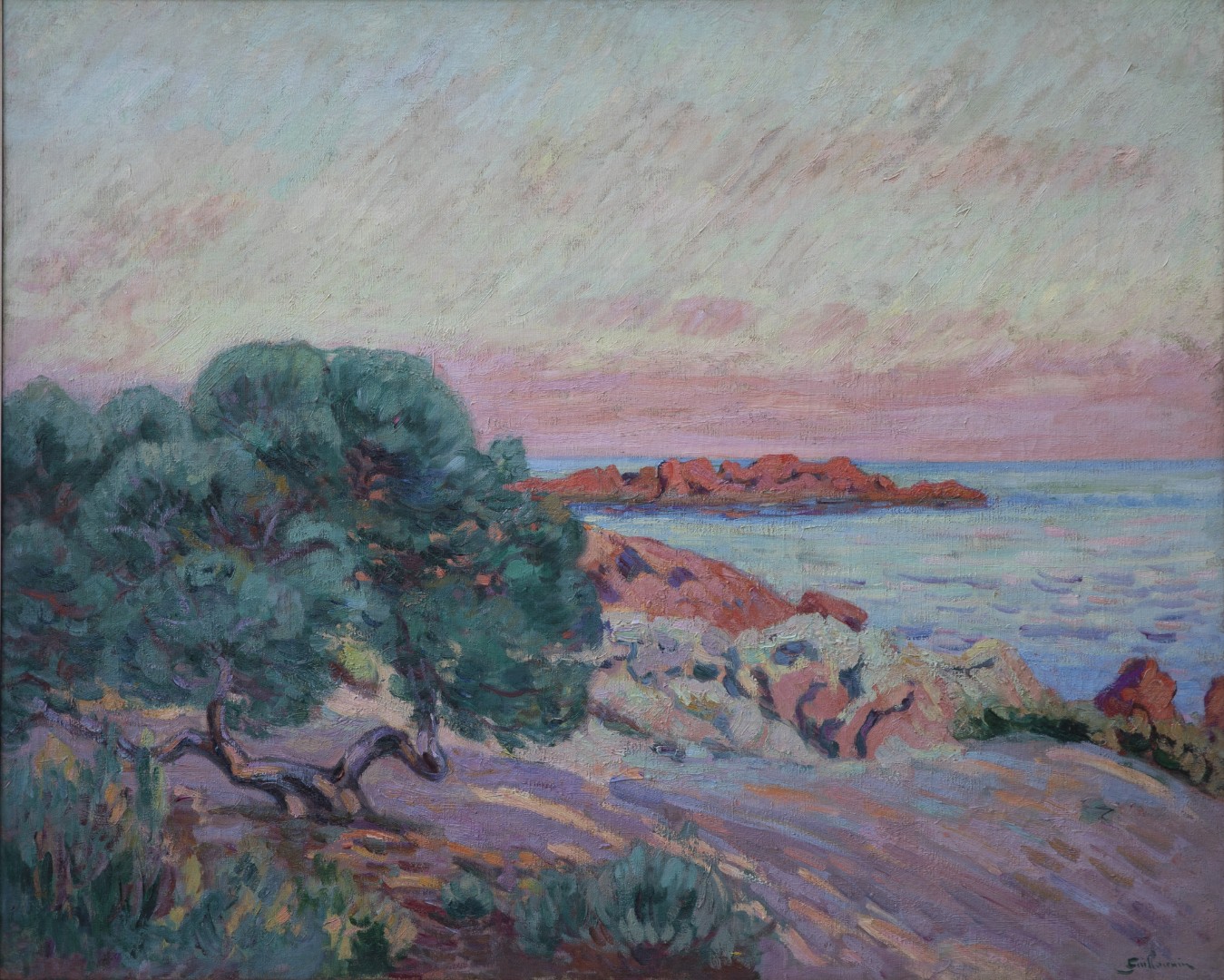 Signiert rechts unten: Guillaumin, verso auf dem Keilrahmen betitelt Agay und datiert avril 1901 (April 1901)