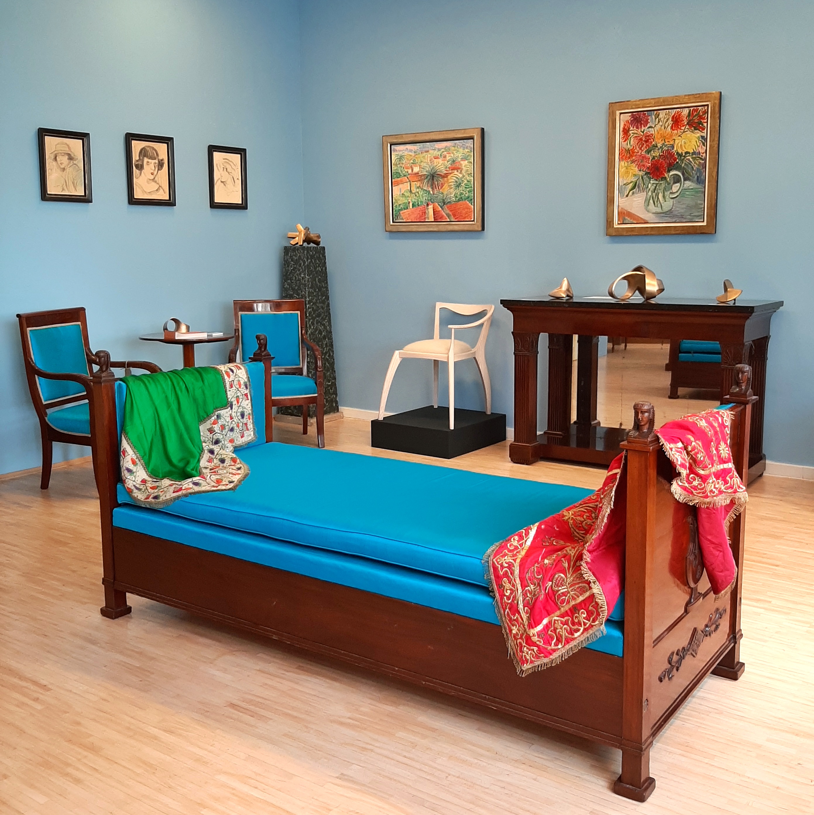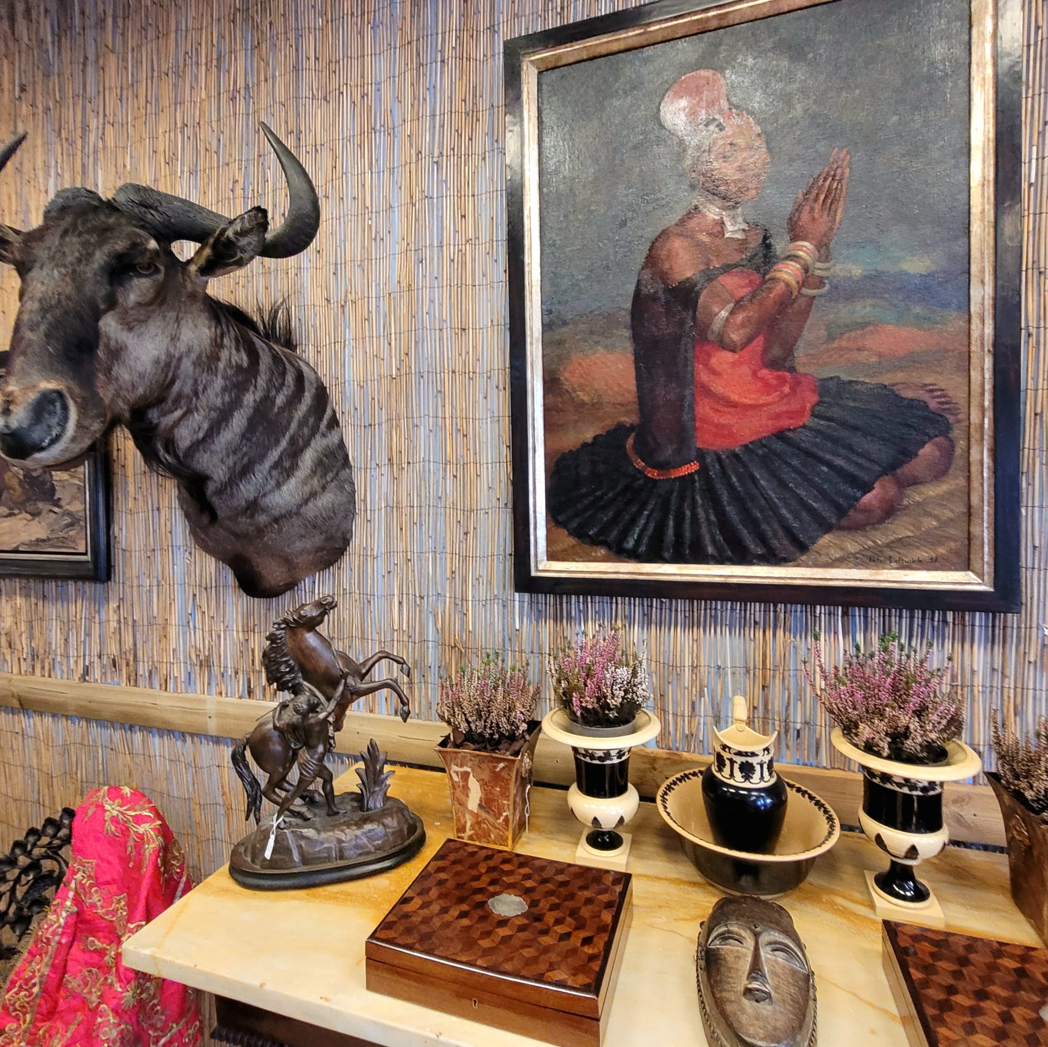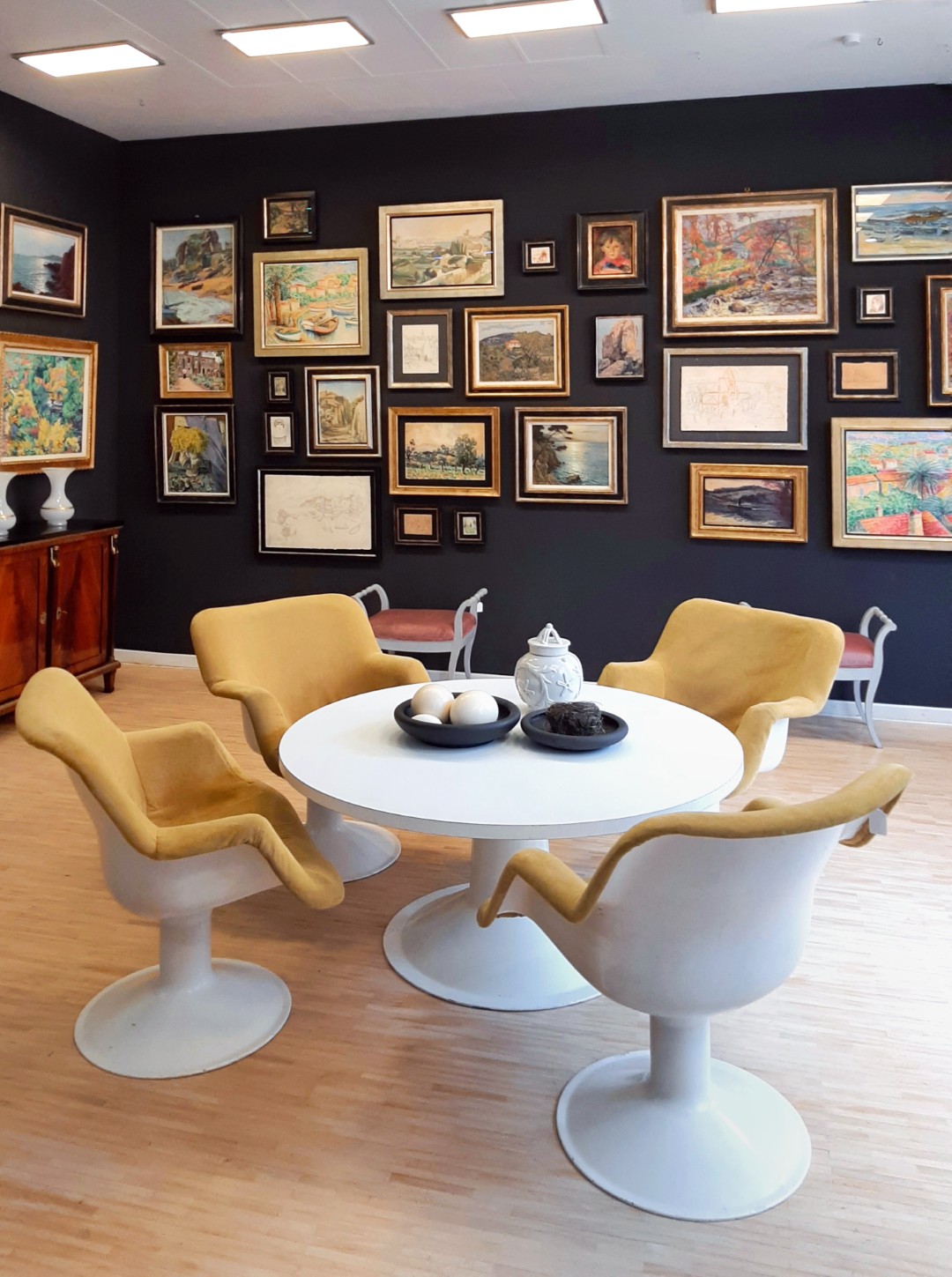 Gezeigt wurden beeindruckende Gemälde von Pierre de Belay und pointillistische Arbeiten aus dem Umkreis von Louis Valtat. Ergänzt wurden sie durch bewegliche Bronzeskulpturen (Rollkörper) von Maximilian Verhas und einzigartige Stuhldesigns von Miles Rice.