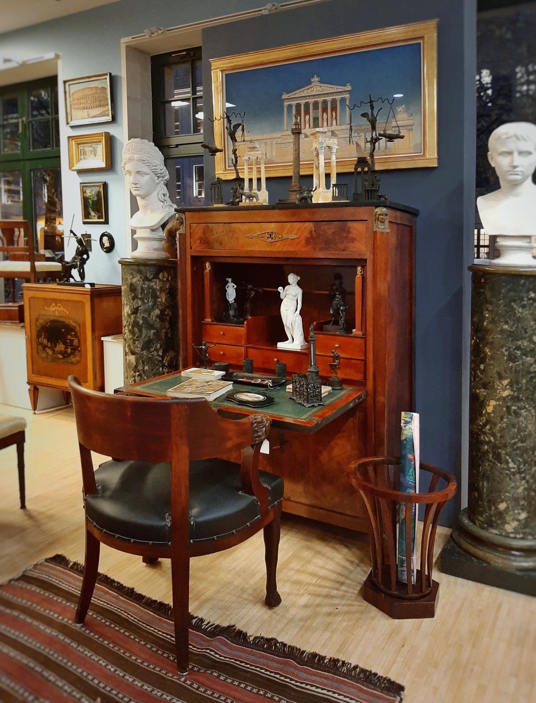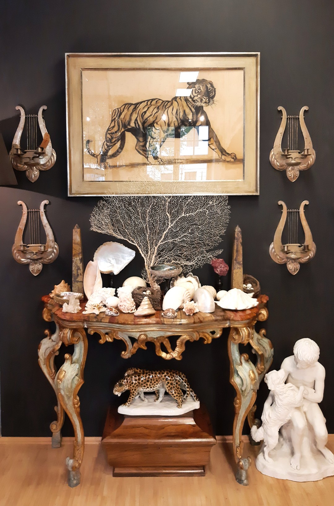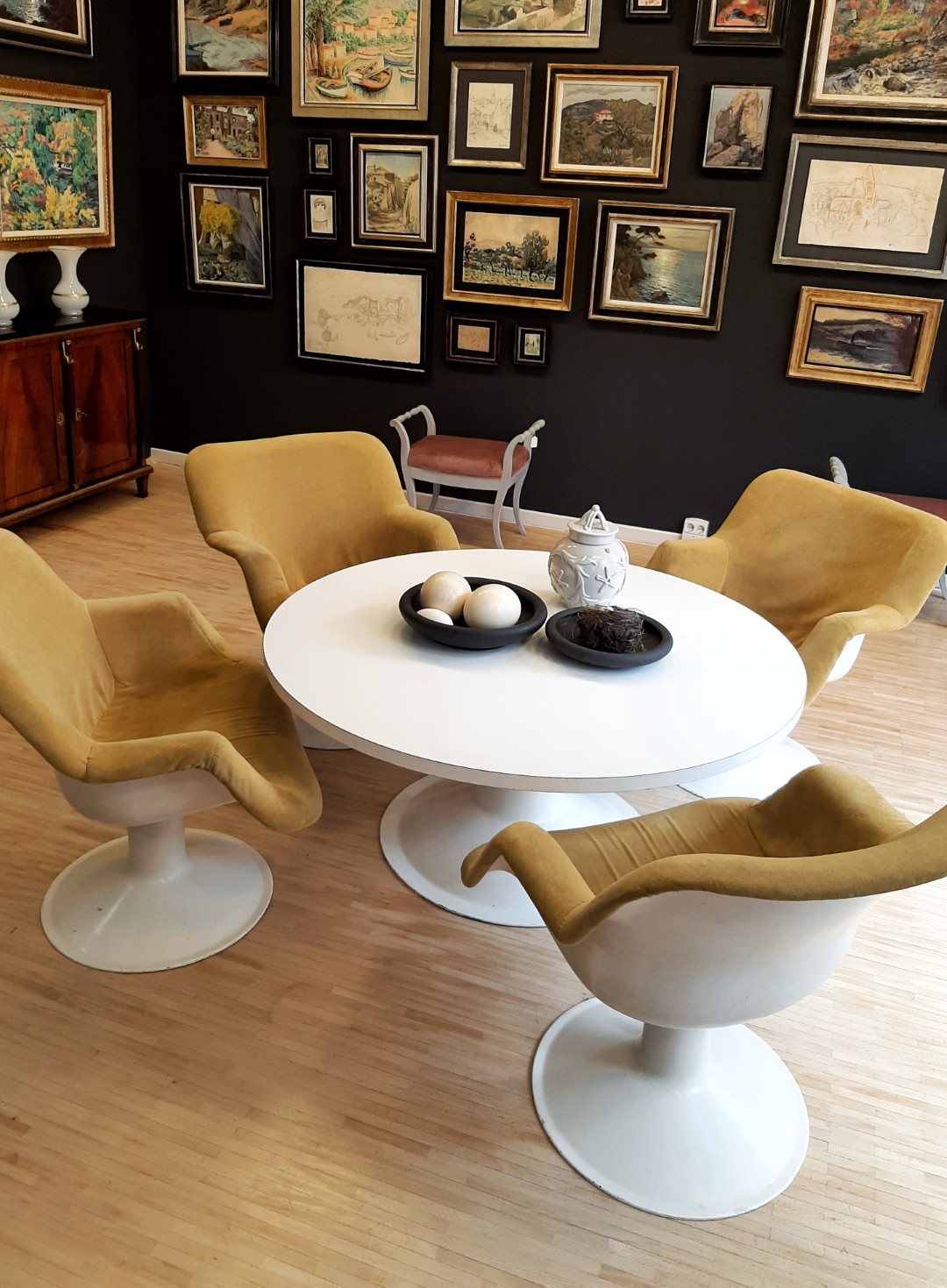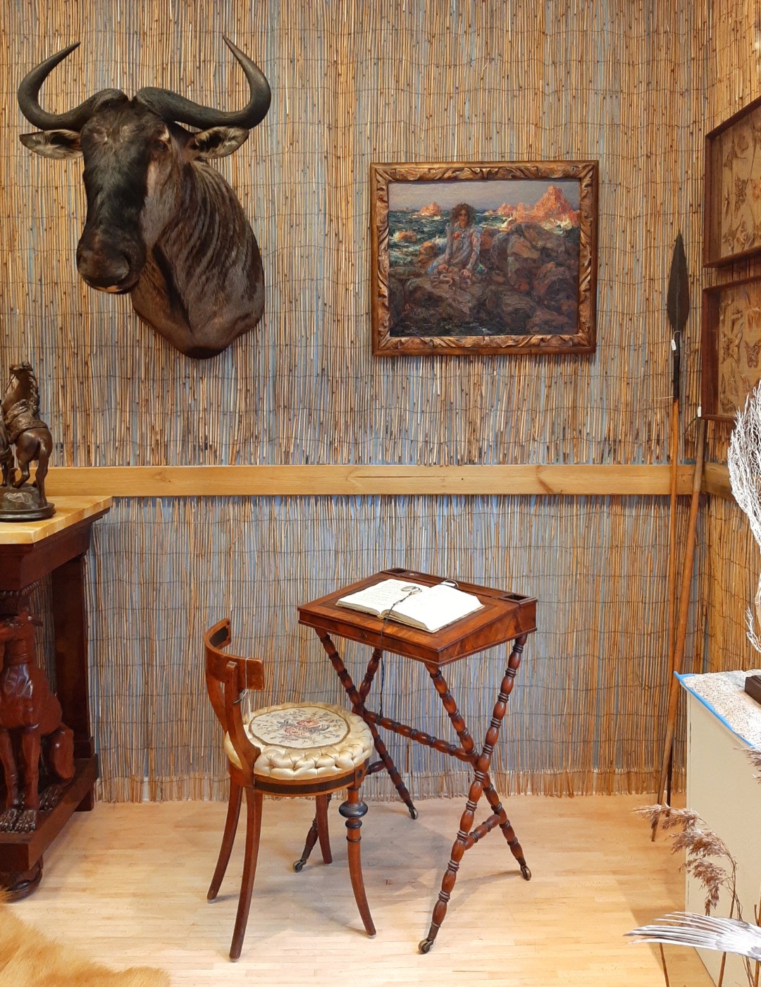 Gezeigt wurden beeindruckende Gemälde von Pierre de Belay und pointillistische Arbeiten aus dem Umkreis von Louis Valtat. Ergänzt wurden sie durch bewegliche Bronzeskulpturen (Rollkörper) von Maximilian Verhas und einzigartige Stuhldesigns von Miles Rice.