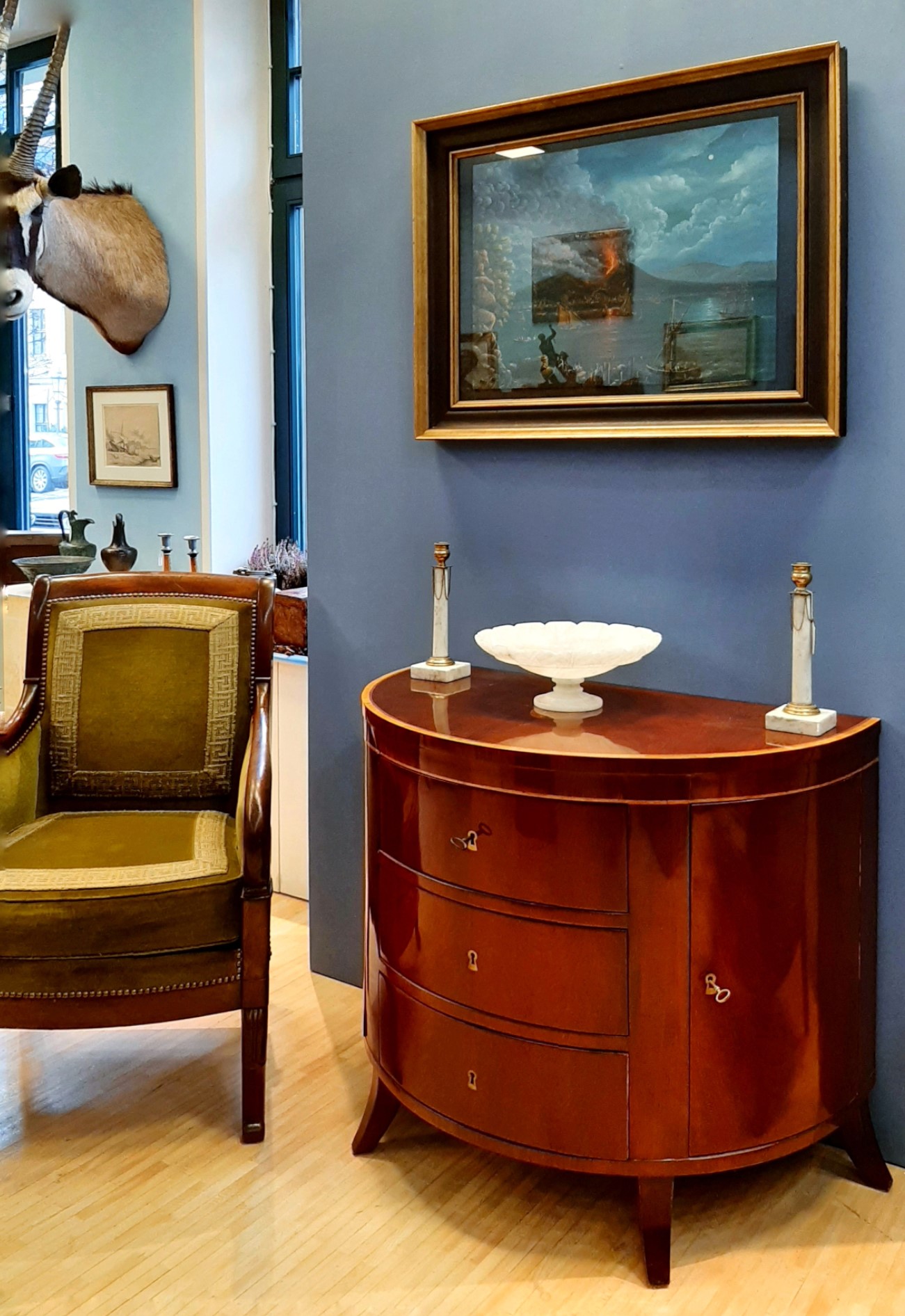 Gezeigt wurden beeindruckende Gemälde von Pierre de Belay und pointillistische Arbeiten aus dem Umkreis von Louis Valtat. Ergänzt wurden sie durch bewegliche Bronzeskulpturen (Rollkörper) von Maximilian Verhas und einzigartige Stuhldesigns von Miles Rice.