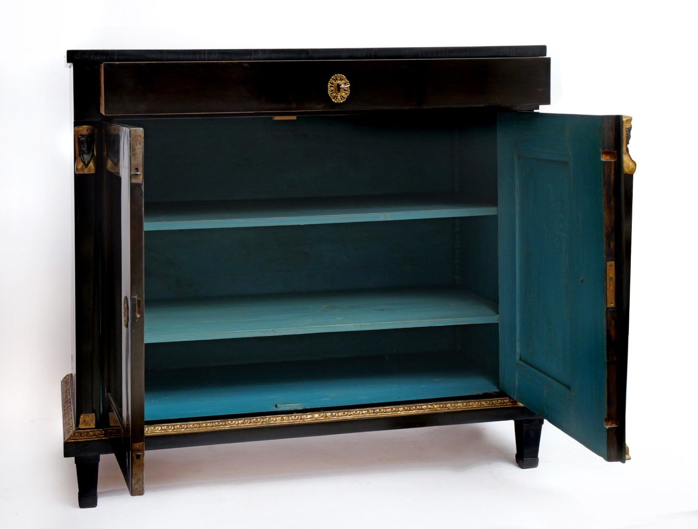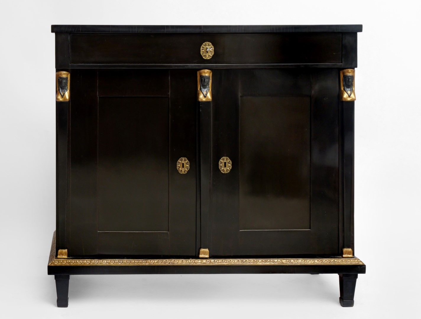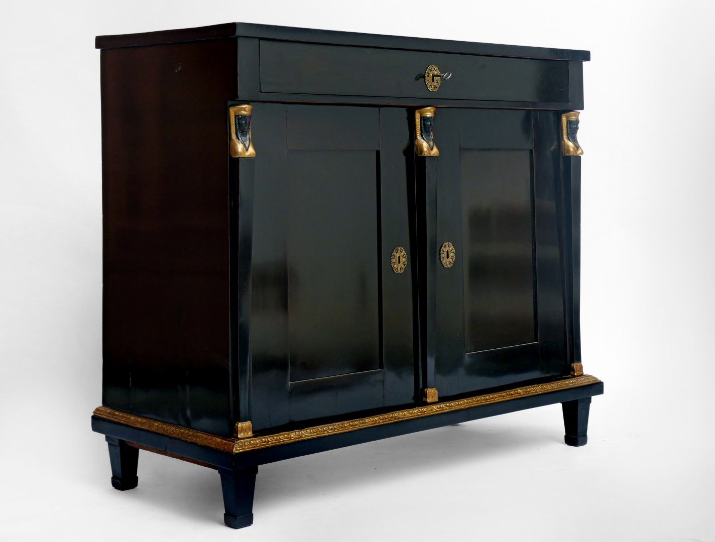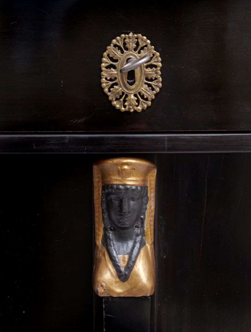Two doors with top drawer and three Egyptian-style herms Ebonised pear wood with pastel applications based on Josef Danhauser