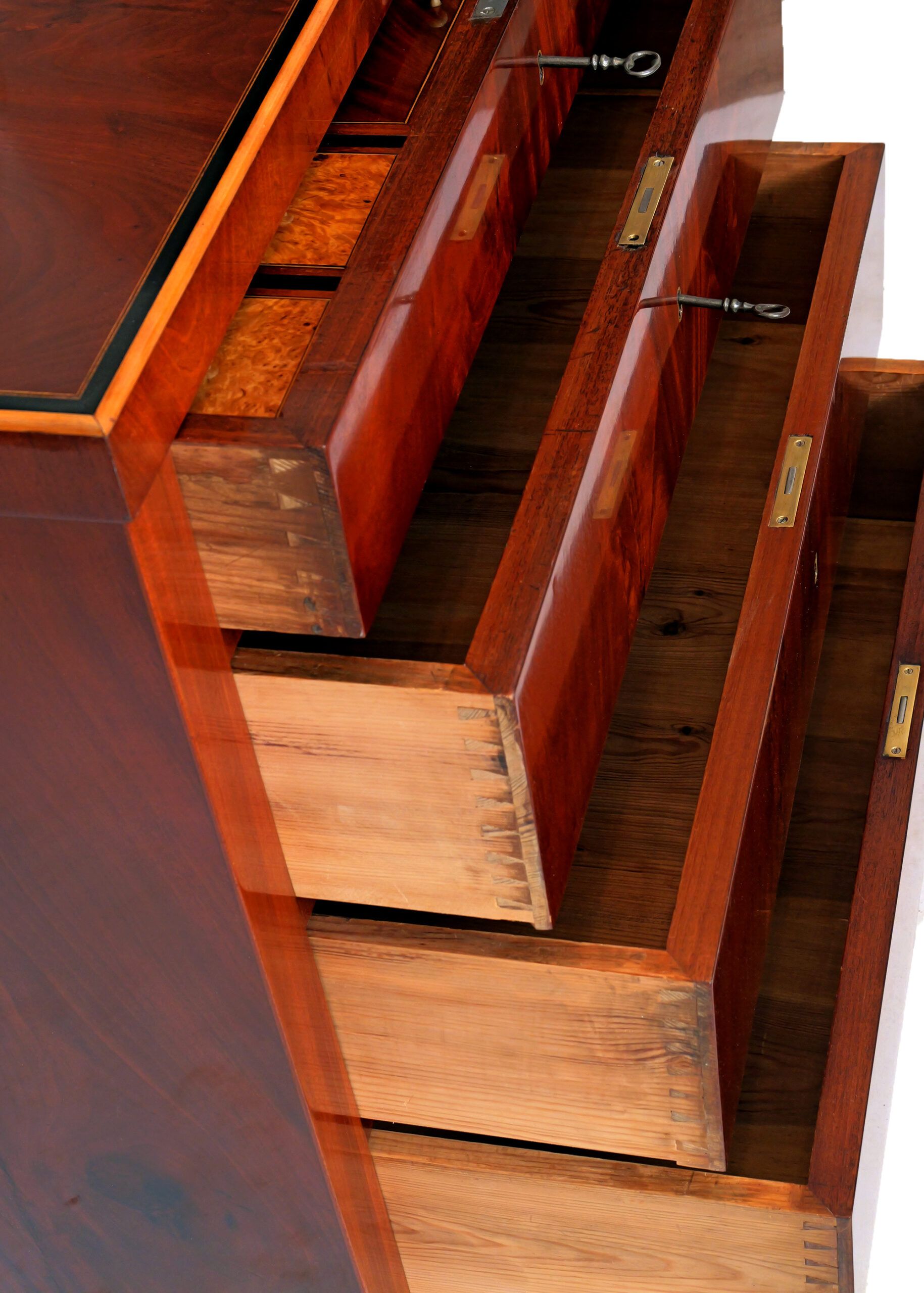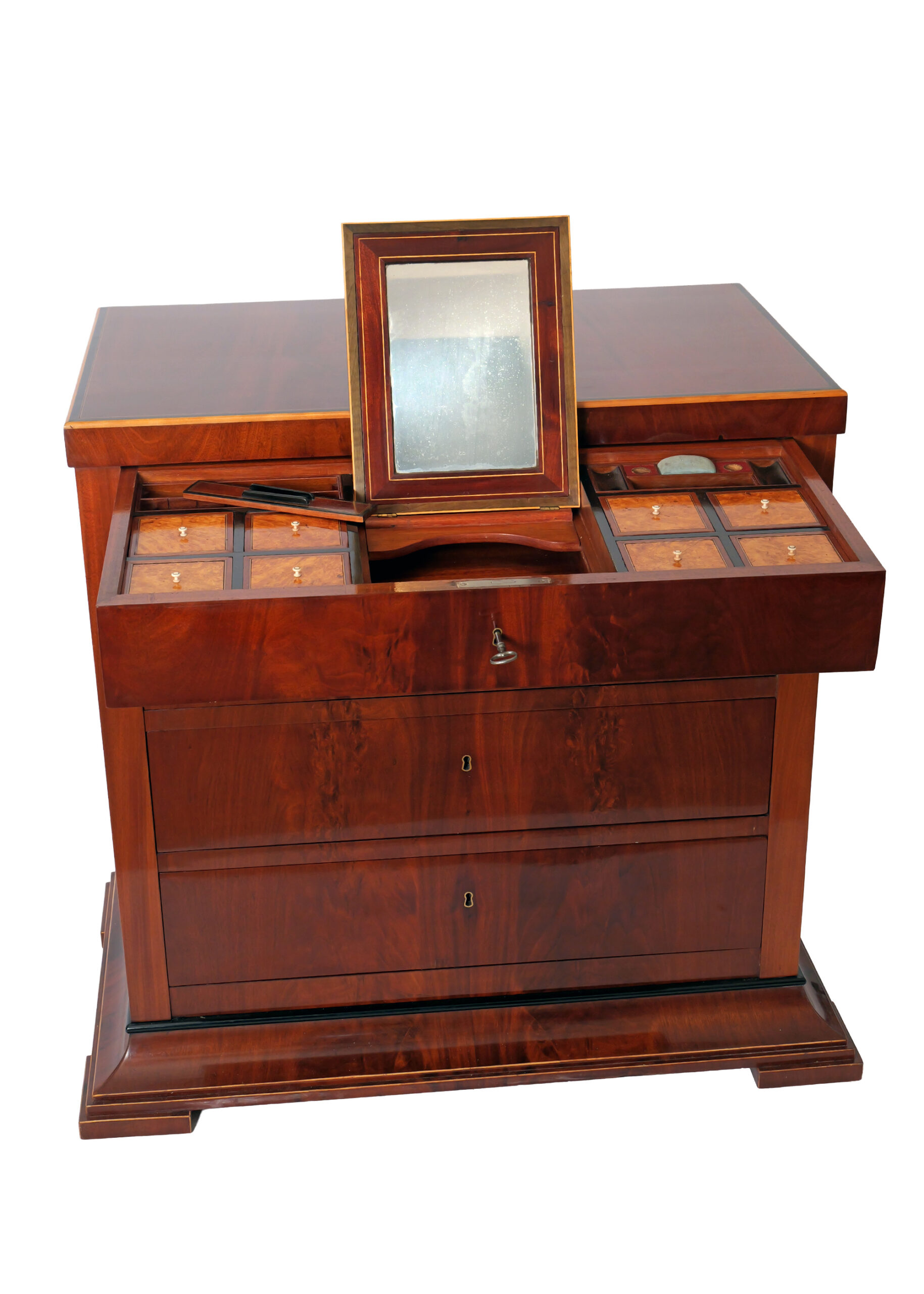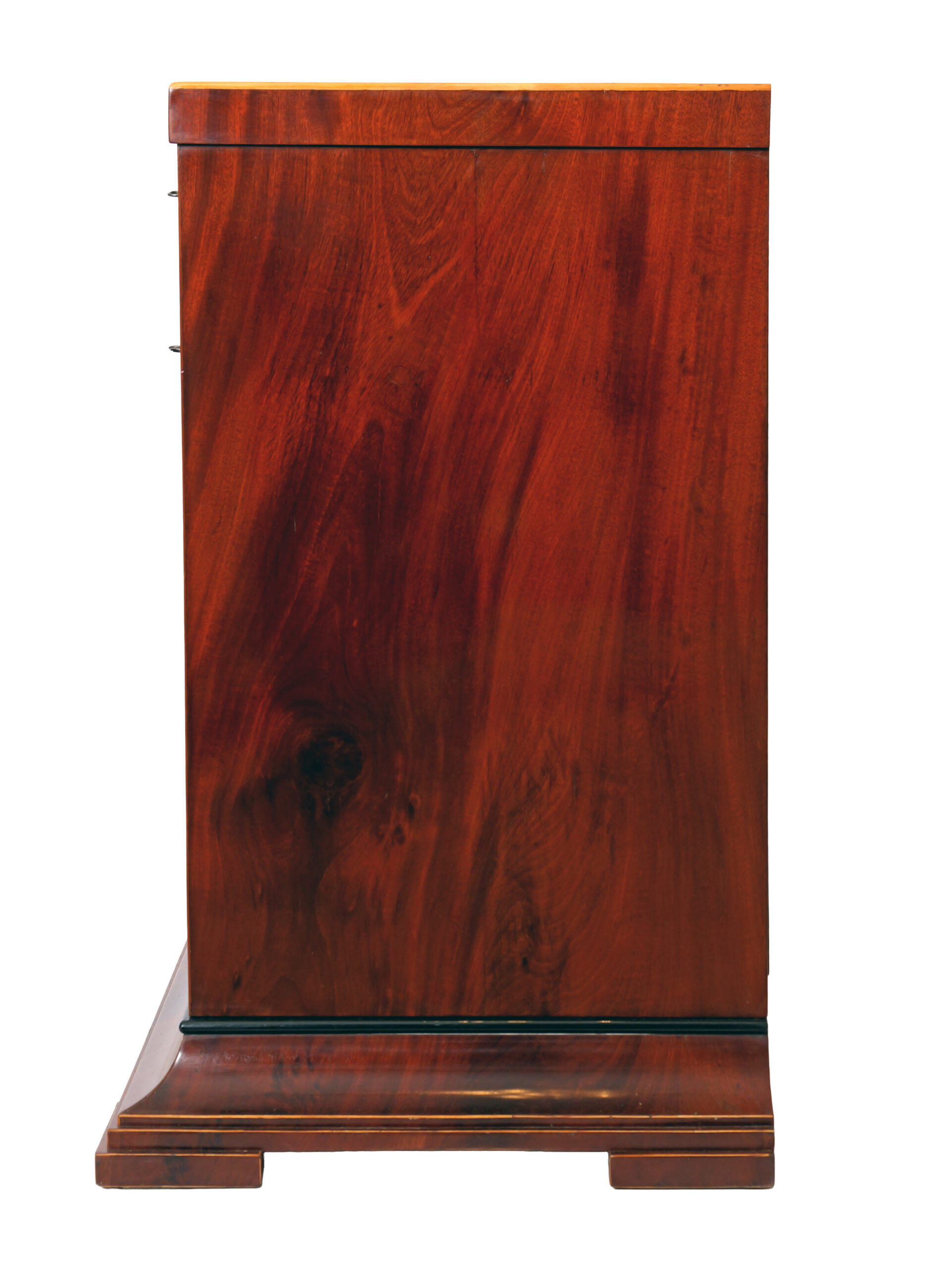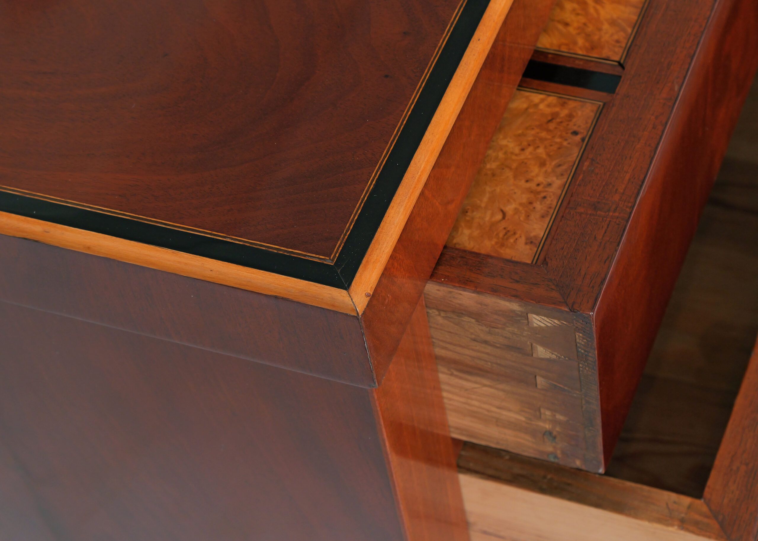 Caoba; detalles en madera de ébano, arce y raíz de abedul; hueso