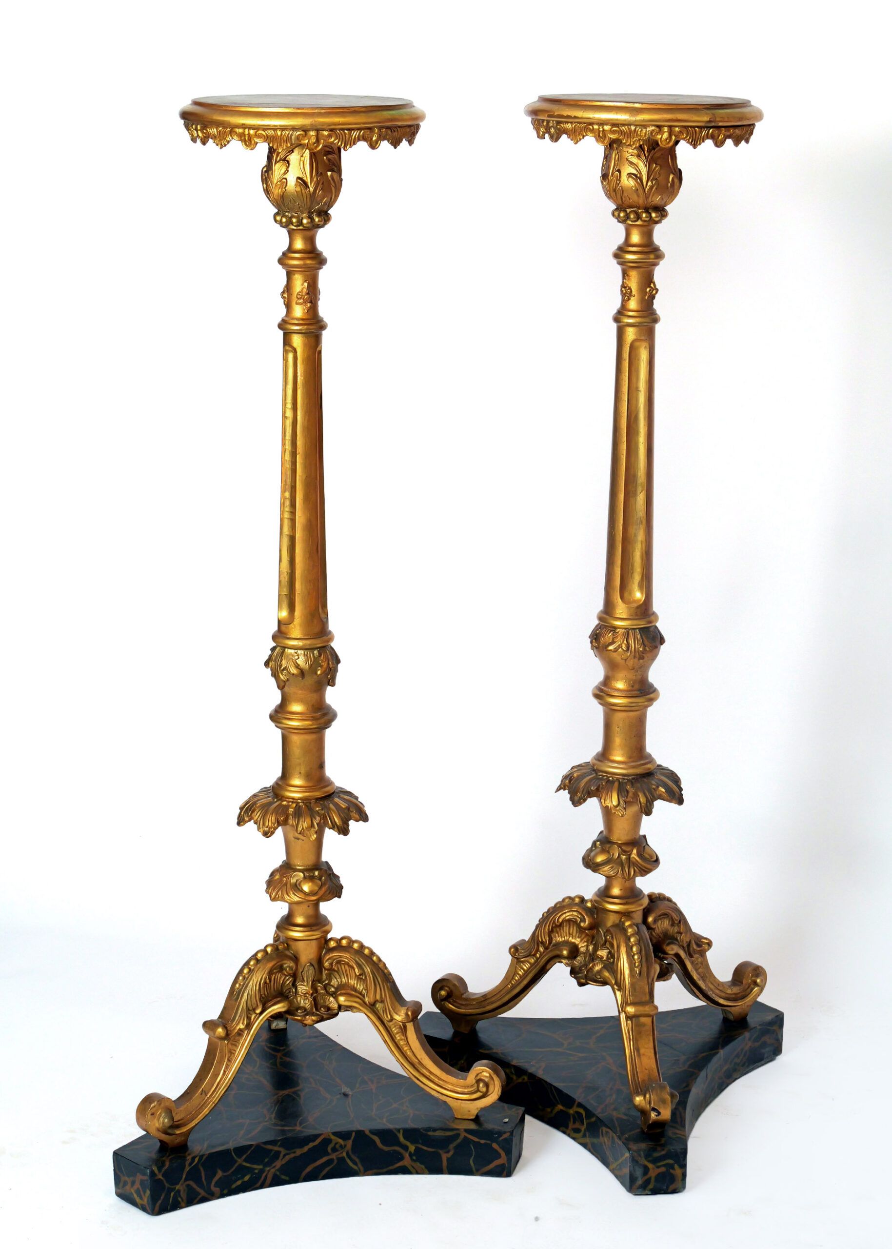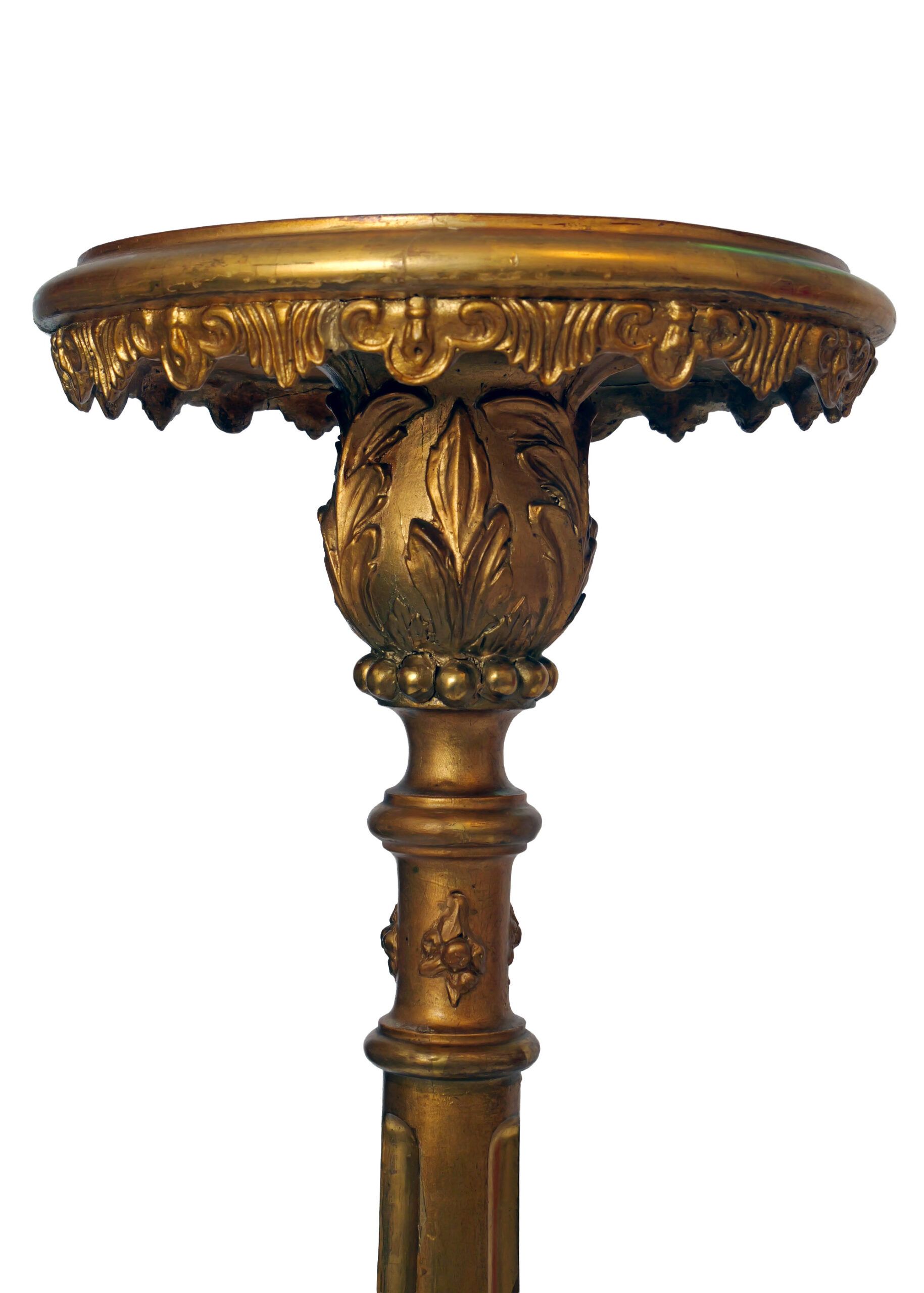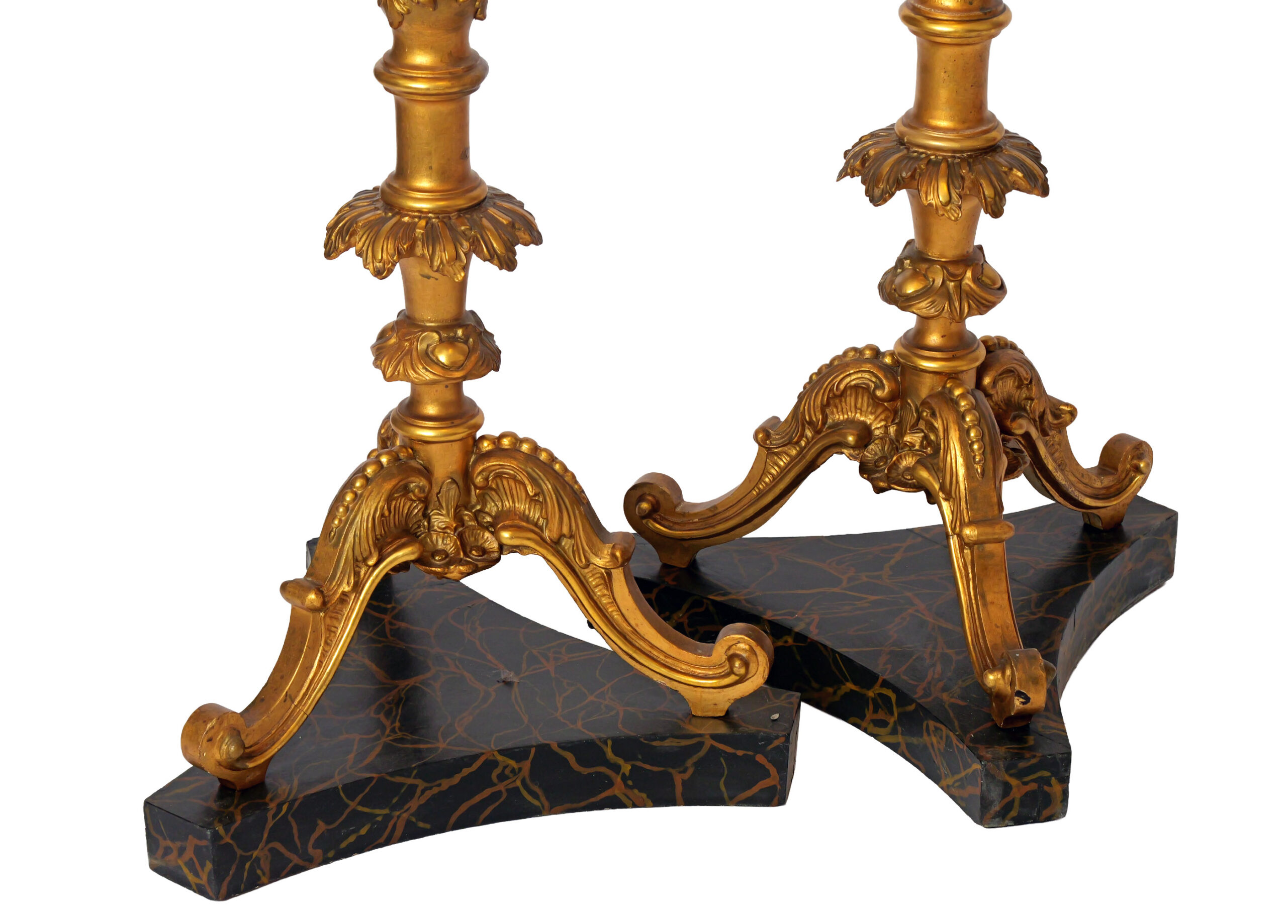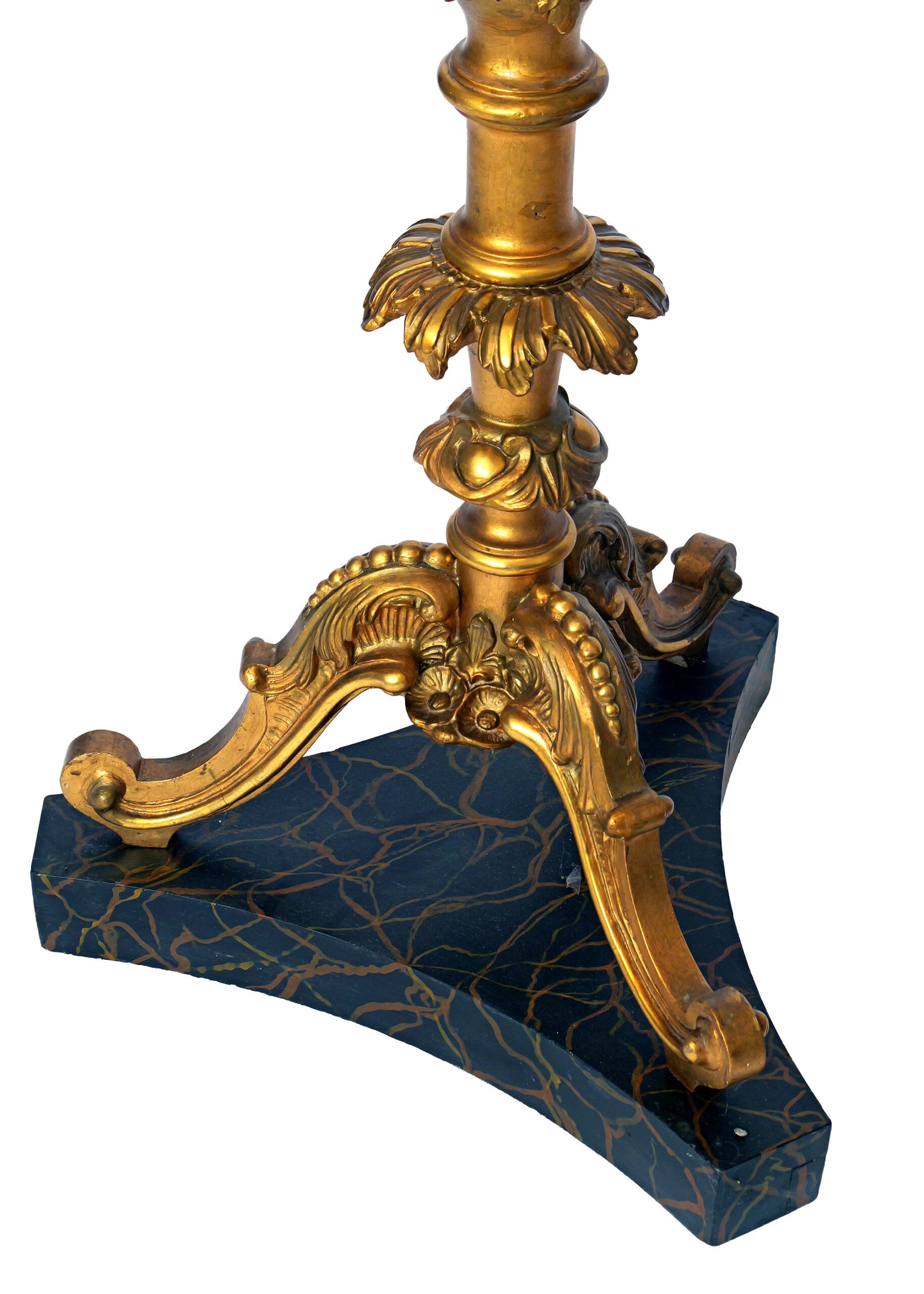 Madera tallada y dorada. Base de madera pintada y marmolizada