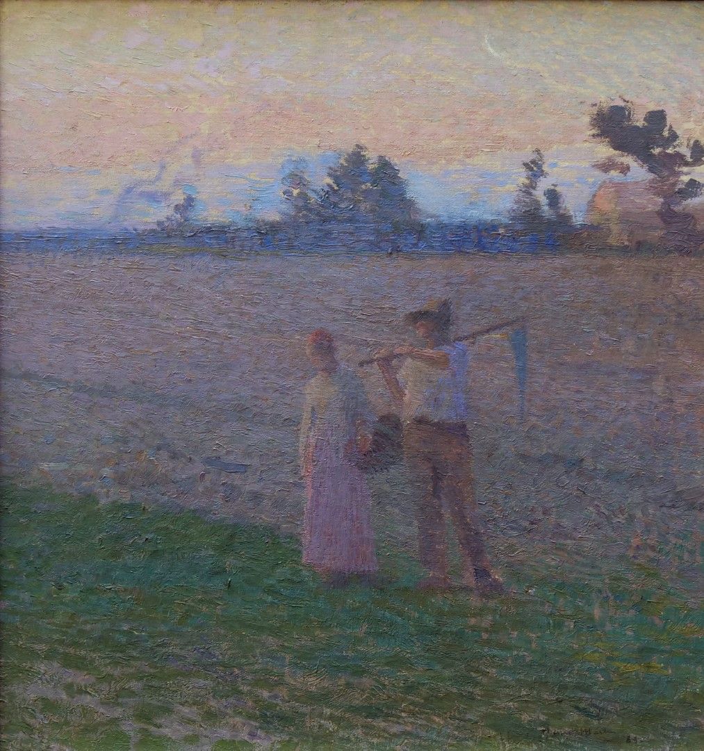 Das Paar auf dem abendlichen Heimweg steht für die Harmonie des Menschen mit der Natur, Ruhe und Frieden nach getaner Arbeit, Ernte und Sommer. Lässt man die tradierte Symbolik mal außer Acht, hat man einfach ein Landschaftsbild in milden Farben, das gekonnt die ruhige Stimmung eines warmen Sommerabends einfängt. Mit „Heimkehr vom Feld“ fand Martin 1889 zu seinem persönlichen impressionistischen Stil und kehrte der bombastischen Salonmalerei den Rücken. Es ist ein wunderschönes und sehr typisches Werk des Künstler voll impressionistischen Zaubers!