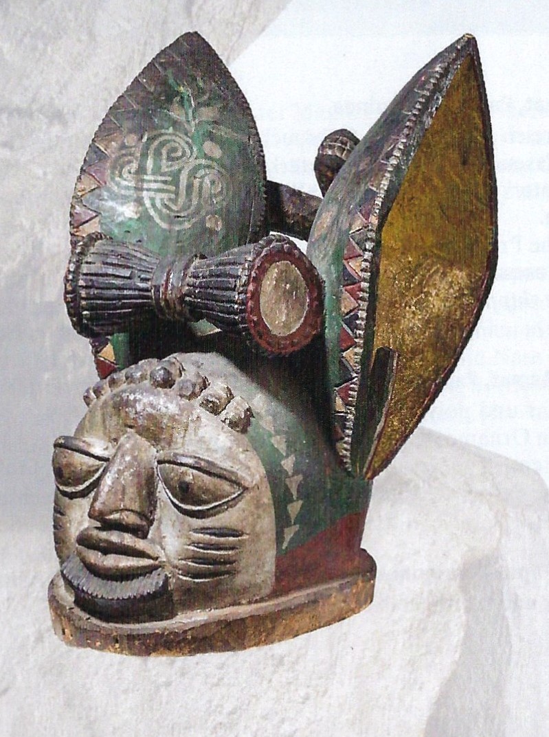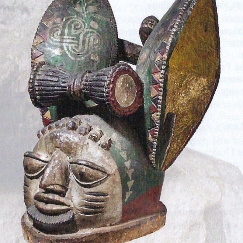 Hölzerne, fein geschnitzte, polychrom gefasste Tanzmaske