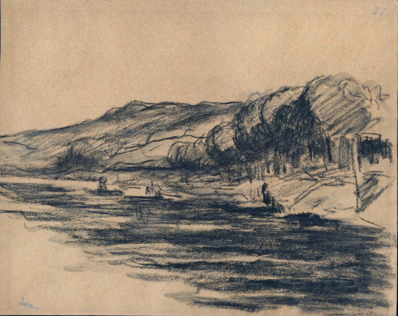 Schwarze Kreide auf graugrünem Papier 20,5 x 25,5cm Signiert mit Bleistift links unten: Luce