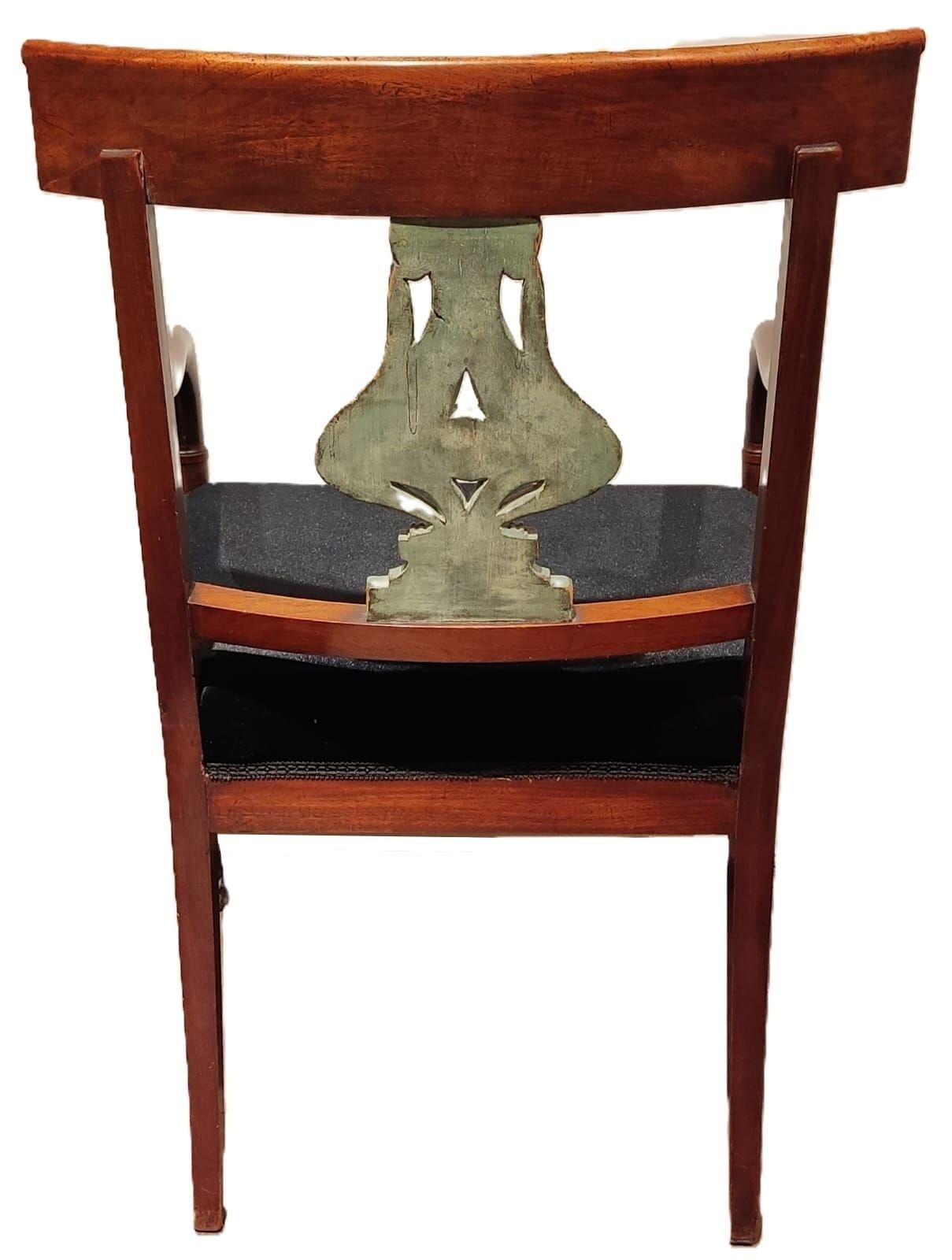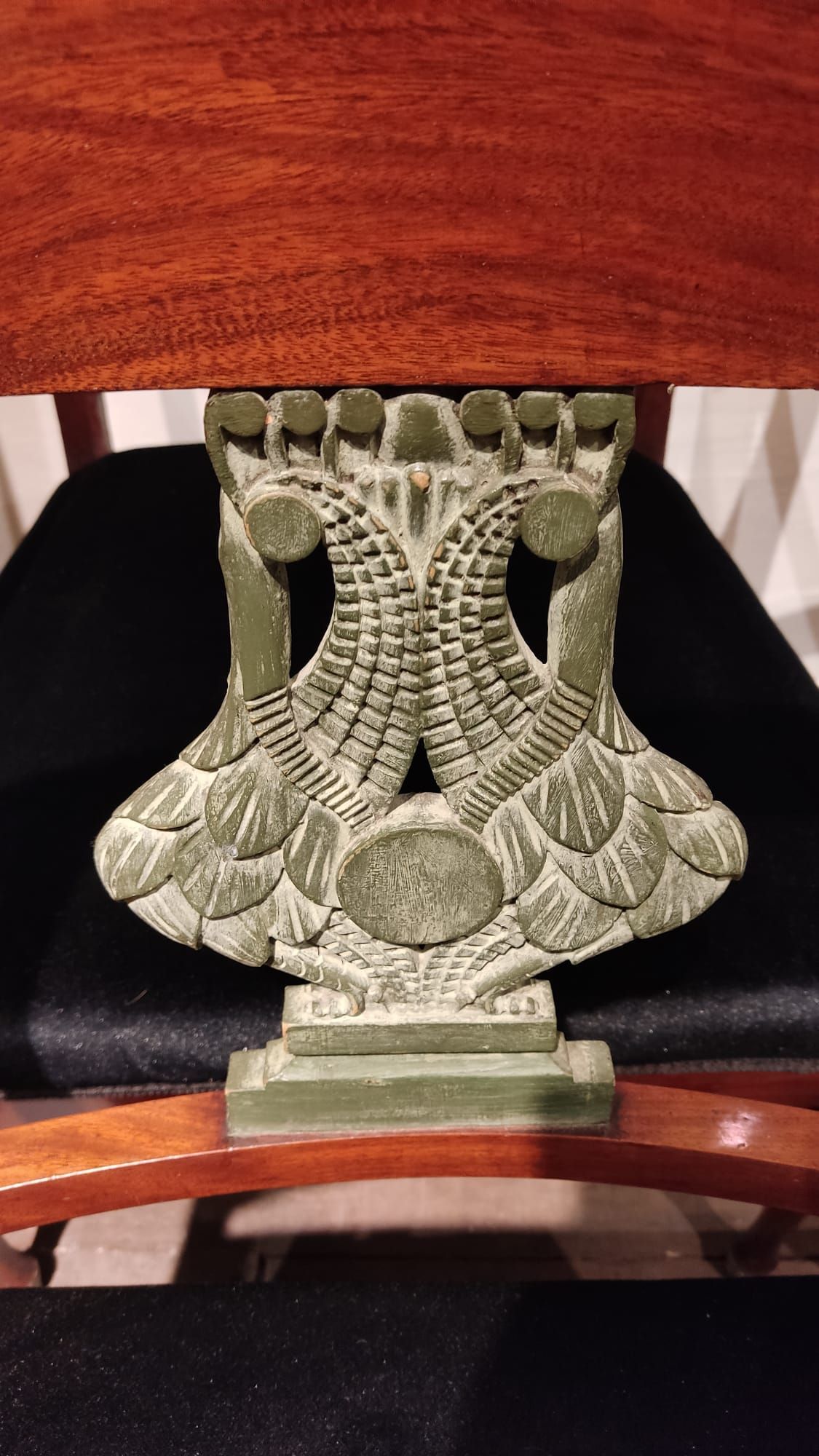 Mahagoni, ebonisiertes Rautenmuster, geschnitzte und grün lackierte Rückenlehne